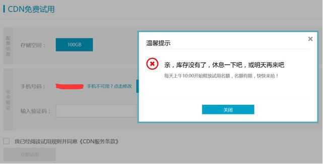 此外阿里云有针对新用户的100G免费CDN加速服务,但很难抢,而且也不知道一天到底多少个名额。