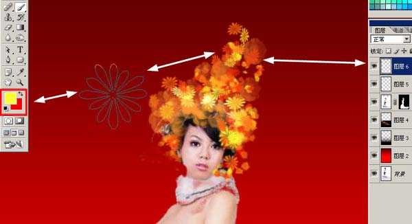 8、调整大小,在人物图层的上部新建图层,用画笔点缀!