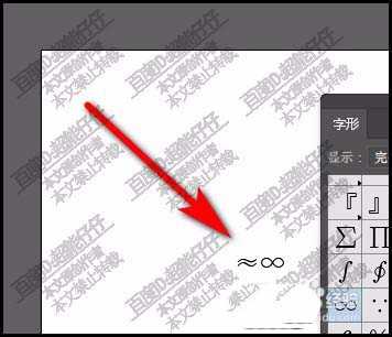 6、约等于号即显示在画板中。比如,再找到无穷大符号,又双击此符号,此符号又显示在画板中。