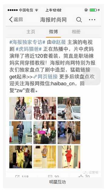 因为是媒体所以涉及到很多明星合作。我们会将合作的内容同时微博微信发布,同时微信设置关键词。微博推送时会带上微信号,并提示关键词回复。然后与明星沟通转发。未必每次明星合作都成功,但每一次成功的分享必然带来庞大的数据增长。