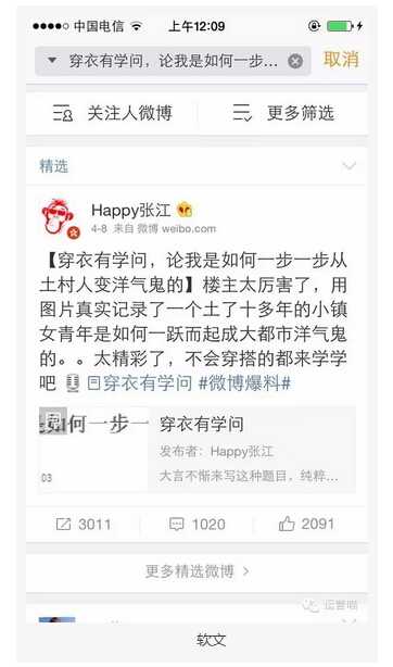 别写些专门糊弄人的玩意,必须戳中你每一位潜在用户的点。下文真的不是我们找营销大号推的文,也不是我们找博主写的帖子。是豆瓣的一个用户自己写了一篇很深刻的着装变迁史,然后微博大号happy张江转发了,然后我们就坐收渔翁之利了。这也引发了我们发掘了软文不可量化的价值,如果经历够用,真的可以花精力去好好做。
